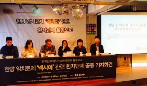 한국환자단체연합회는 4일 서울 종로구 엠스퀘어에서 ‘한방 암치료제 넥시아 관련 환자단체 활동결과 공동기자회견’을 열고 이같이 주장했다. 환자단체연합은 넥시아의 효능을 검증하기 위해 지난해 11월 ‘환자단체넥시아검증위원회’를 발족해 1년여 가까이 활동해 왔다.
