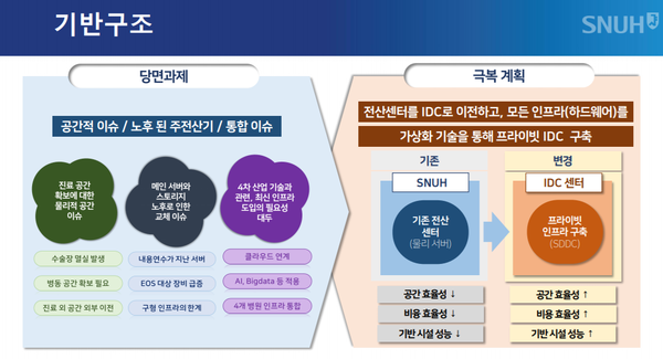 이에 서울대병원은 전자센터를 IDC로 이전하고 모든 하드웨어 인프라를 가상화 기술을 통해 프라이빗 IDC로 구축하고 있다.