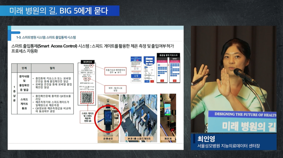 이밖에도 최 센터장은 병원 직원들의 만족도가 가장 높았던 스마트병원 시스템으로 ‘스마트 출입통제(Smart Access Control) 시스템’을 꼽았다. 이는 병원 방문객이 출입통제 키오스크 또는 모바일 문진을 통해 출입확인증을 발급 받고 스피드 게이트를 통과하면서 체온과 출입확인증을 등록하는 방식으로 이뤄졌다.