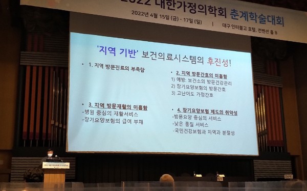 대한가정의학회가 지난 15일 호텔인터불고 대구에서 개최한 ‘2022 일차의료·가정의학회 춘계학술대회’에서 전문가들은 현재 우리나라에서 시행되고 있는 커뮤니티 케어를 걸음마 단계라고 평가했다.