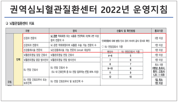 신 이사는 “권역심뇌혈관질환센터에 (수술하는) 신경외과 전문의 정원은 1명뿐이다. 1명이 응급수술도 하고 신경중재시술도 하고 1년 내내 콜도 받고 환자도 봐야 한다”며 “이런 정원을 누가 정한건지 신경외과 의사들은 수술방에 있어서 몰랐다. 회의에 나가본적도 없다. 이렇게 신경외과 의사들은 정부의 심뇌혈관질환정책에서 소외되고 있다”고 비판했다.