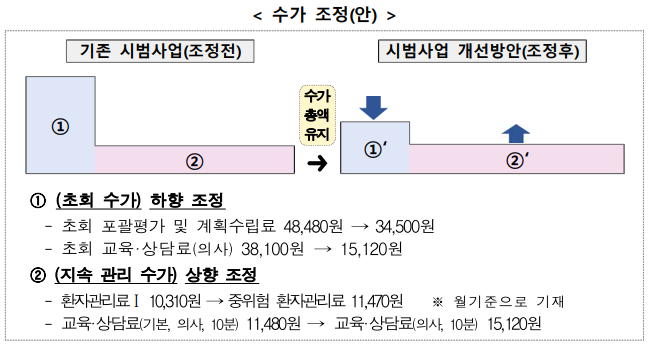 주요 추진 방향은 ▲초회 수가 하향 및 지속 관리 수가 상향 조정 ▲환자 인센티브 제공 ▲환자관리 방식 강화 ▲서비스 제공자 대상 교육 의무화 ▲전산시스템 개선 등이다.