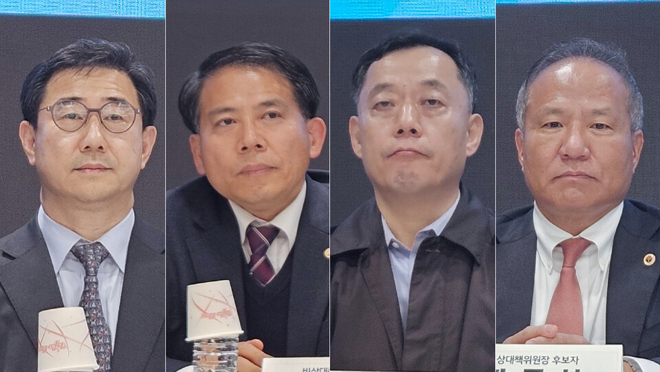 의협 대의원회는 12일 오후 용산 회관에서 후보자 설명회를 열고 비대위원장으로서 포부와 계획을 들었다. 회장 불신임(탄핵) 후 공백기 의료계를 이끌 대표자를 뽑는 선거에 총 4명이 출사표를 던졌다. 대한의학회 박형욱 부회장(단국의대), 경기도의사회 이동욱 회장, 대한병원의사협의회 주신구 회장, 서울시의사회 황규석 회장이다(가나다순).