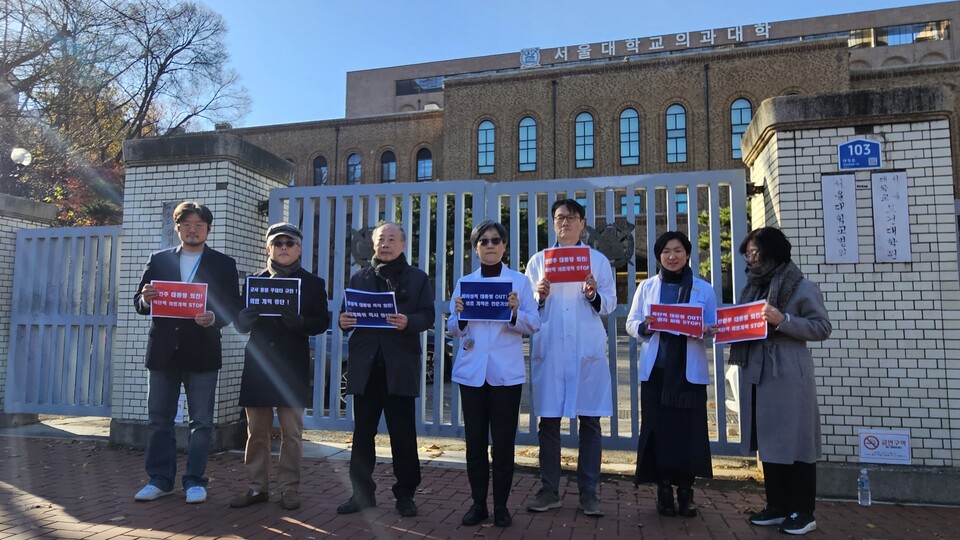 서울의대-서울대병원 교수 비상대책위원회는 6일 서울의대 본관 앞에서 기자회견을 열어 시국 선언을 발표했다.