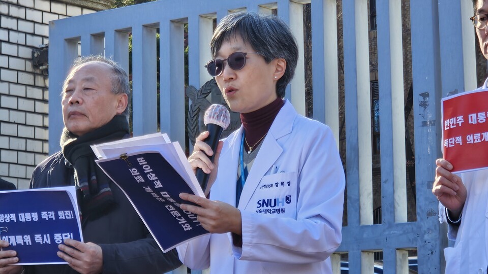 이어진 기자회견에서 강희경 위원장은 이번 비상계엄에 대해 "정부가 아무도 전공의를 해선 안 된다고 선언한 것"이라며 "('전공의 처단'이 들어간) 포고령을 봤을 떄 누가 (앞으로) 전공의가 되겠나"라고 말했다.