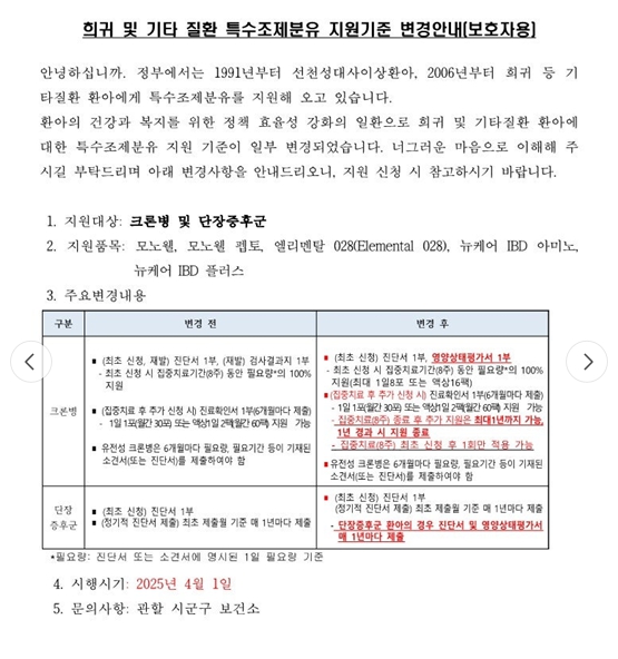 19세 미만 소아청소년 크론 환자들에게 의사 진단서만 있으면 제공돼 왔던 특수식이(경장식) 지원이 대폭 축소되면서 논란이 일고 있다.