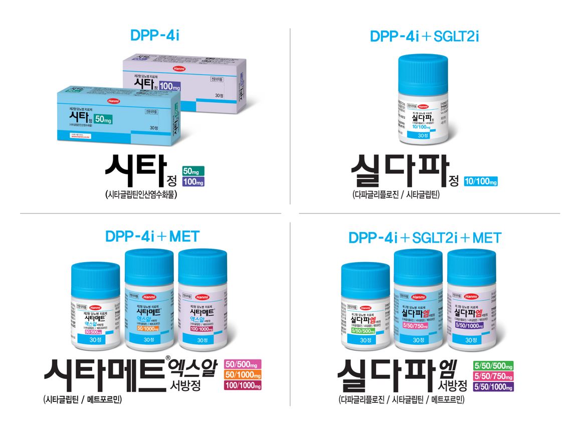 먼저, 한미약품은 시타글립틴 성분의 당뇨병 치료 단일제 및 복합제 등 2개 제품군을 ‘시타패밀리’로 묶어 출시했다. 시타패밀리는 DPP-4i 계열의 시타글립틴 단일제인 ‘시타정’ 2개 용량(50mg, 100mg)과 시타글립틴에 또 다른 당뇨병 치료제 성분인 메트포르민을 결합한 복합제 ‘시타메트XR서방정(이하 시타메트XR)’ 3개 용량(50/500mg, 50/1000mg, 100/1000mg)으로 구성됐다.
