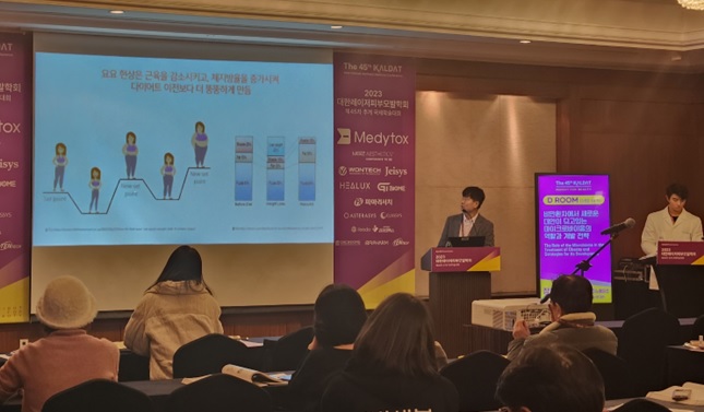 첫 번째 세션에는 안태환 대한레이저피부모발학회장이 연자로 나서 ‘안티에이징의 새로운 타깃으로서 마이크로바이옴의 임상적 의의’라는 주제로 강의했다. 안 회장은 노화 징후의 개선을 목적으로 하는 마이크로바이옴의 활용 가능성을 강조하며, 항노화 특허를 받은 지아이바이옴 넘버세븐 원료 조성물의 인체적용시험 결과를 발표했다. 넘버세븐 원료 조성물은 서울대 의대에서 수행한 인체적용시험에서 노인 수면의 질 및 배변활동 개선에 긍정적인 효과를 나타냈다.