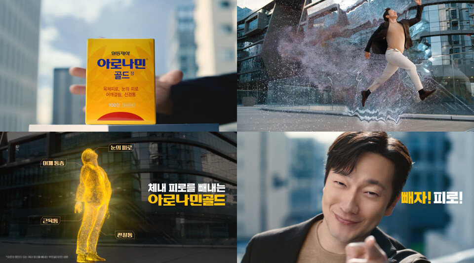 새롭게 선보이는 아로나민 골드 광고 캠페인은 육체 피로를 개선하는 피로회복제 본연의 속성에 초점을 맞춰 ‘피로를 체내에서 빼낸다’는 메시지를 강조했다.
