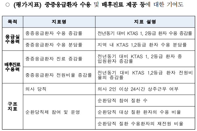 시범사업은 ‘응급의료기관 기여도 평가’‧‘외상센터 기여도 평가’‧‘소아전문응급의료센터 기여도 평가’로 나눠 진행한다.