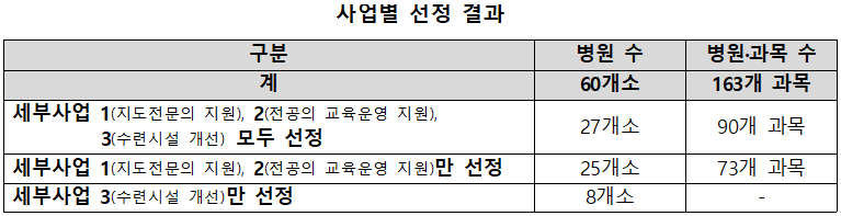 수련환경 혁신지원 사업 대상 병원 60곳이 선정돼 본격적인 사업이 시작된다. 정부는 9월 전공의 복귀에 맞춰 추가 접수도 진행한다.