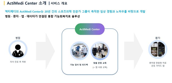그렇게 10년간의 고민 끝에 그가 내놓은 해답은 ‘창업’이었다. 2024년 설립된 ‘액티메디(Actimedi)’는 그의 오랜 신념인 ‘운동이 약이다(Exercise is Medicine)’를 디지털 기술로 구현한 결정체다. 액티메디는 단순히 운동 동작을 알려주는 앱이 아니다. 의사의 진단과 처방, 환자의 정밀 데이터 측정, 맞춤형 운동 프로그램 제공, AI 상담, 데이터 축적 및 분석까지, 환자의 회복 전 과정을 아우르는 거대한 ‘통합 디지털 치료 플랫폼’이다.